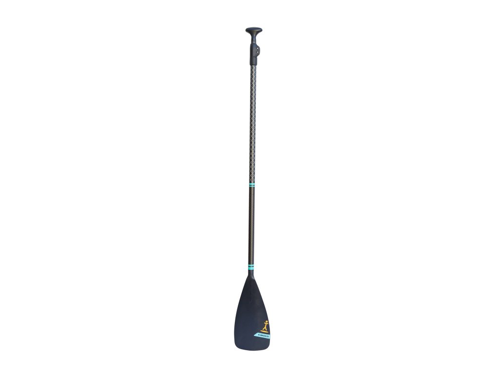 Dětské trojdílné karbonové pádlo Kiboko s plastovým listem – nastavitelné pádlo pro nejmenší paddleboardisty od cca 4-5 let s vysokým obsahem karbonu a odolným plastovým listem. Dětské ruce přizpůsobená trubka (žerď) a hlavička pádla (hruška) v kombinaci s nízkou hmotností plastového listu umožňuje mladým jezdcům pracovat s pádlem efektivně a technicky správně.