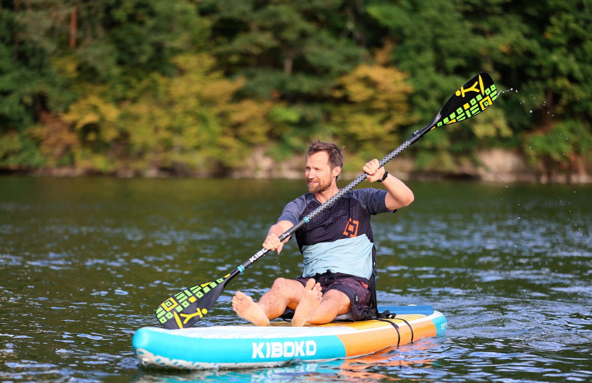 SUP kajaková karbonová pádla se dvěma plastovými listy jsou navržena tak, aby se výměnou přídavného listu za horní trubku vytvořilo pohodlně a rychle oboustranné pádlo pro pádlování v sedu nebo kleku. Kajakové pádlo je velmi oblíbenou variantou pro děti a při jízdě ve větru, kdy se s oboustranným pádlem mnohem snadněji udržuje směr (paddleboard tzv. “nekličkuje”).