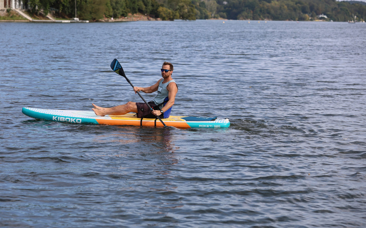 Univerzální karbonová pádla se dvěma listy se na hladině udrží pouze omezenou dobu. Pro méně zkušené jezdce a děti proto doporučujeme použití nosných plováčků Kiboko připevněných na žerď pádla.