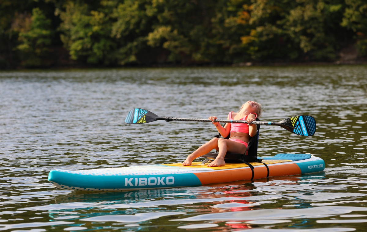 SUP kajaková karbonová pádla se dvěma plastovými listy jsou navržena tak, aby se výměnou přídavného listu za horní trubku vytvořilo pohodlně a rychle oboustranné pádlo pro pádlování v sedu nebo kleku. Kajakové pádlo je velmi oblíbenou variantou pro děti a při jízdě ve větru, kdy se s oboustranným pádlem mnohem snadněji udržuje směr (paddleboard tzv. “nekličkuje”).