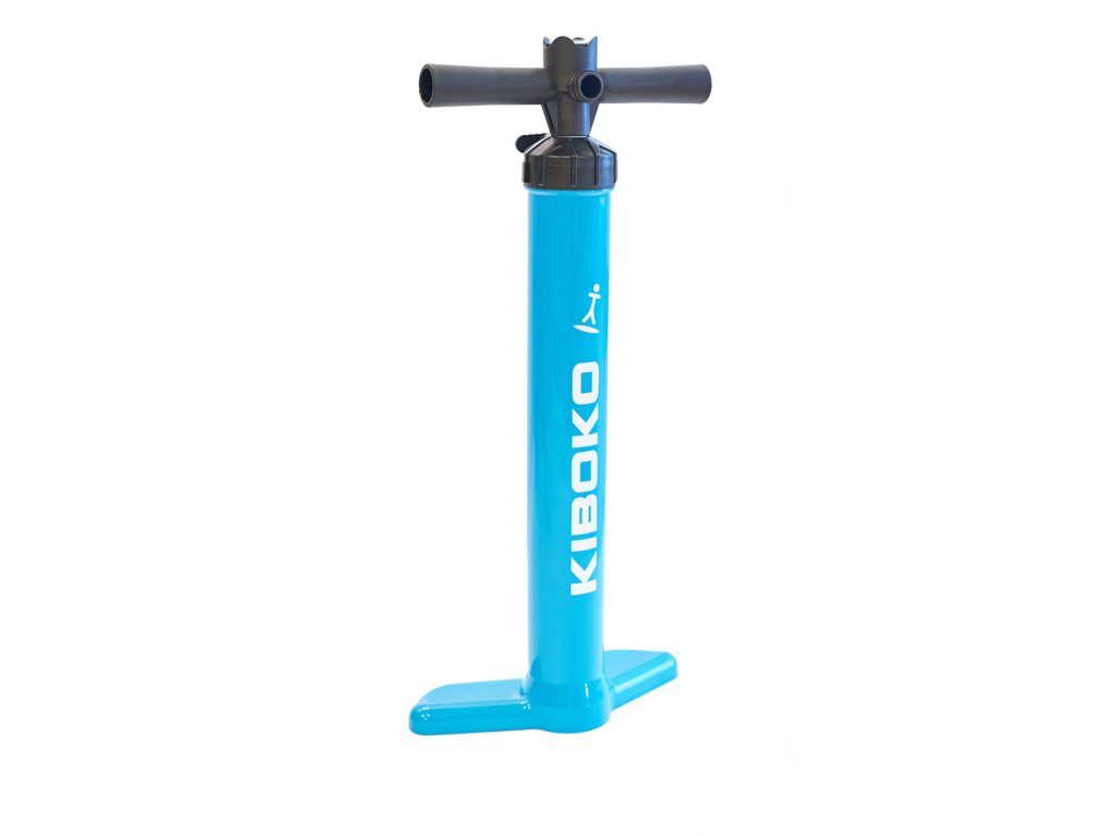 Obousměrná pumpa KIBOKO. Maximální tlak 29 PSI/ 2 Bar. Pro přepínání mezi obousměrným a jednosměrným chodem pumpy slouží červená páčka na držadle pumpy. Obousměrným chodem doporučujeme pumpovat maximálně do tlaku 0,5 baru. Pomocí pumpy KIBOKO lze také z paddleboardu vysát zbytkový vzduch pro snadnější balení