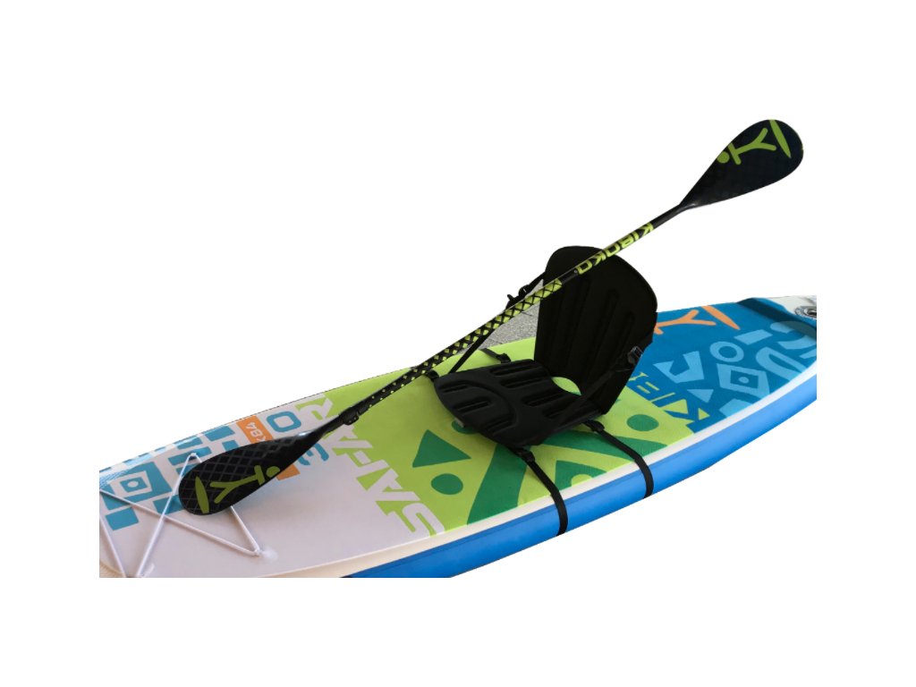Kajakové sedátko Yaté - ideální doplněk na paddleboard! Díky snadno upevnitelné sedačce od firmy Yaté můžete na paddleboardu pohodně sedět a pádlovat. Na druhu či velikosti paddleboardu nezáleží - díky nastavitelným popruhům se dá sedačka připevnit na obvod kteréhokoliv plováku, k jejímu připevnění nepotřebujete mít na paddleboardu nalepená kovová oka.